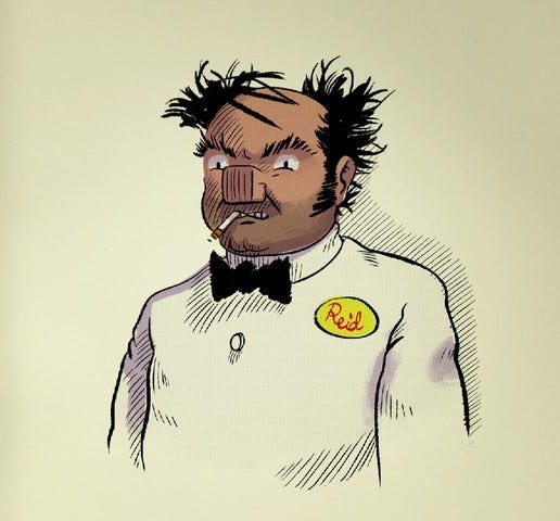 Reid terrorizes the neighbourhood. He is not someone you would want anywhere near your house. In one episode he pretends to have been stabbed in the back on the doorstep of one of his customers, to freak them out. Not only are they overjoyed that he’s apparently dead, but when the mailman arrives and sees the body, he congratulates the couple, and runs off to spread the good news.