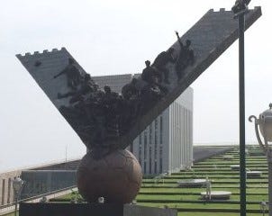 There are thousands of statues of footballers around the world including more than 12 of Pele and 10 of Diego Maradona. There are 5 of Lionel Messi and only 1 of Cristiano Ronaldo proving who the current GOAT is. China has more statues of footballers than any other country except Britain. In Kepu Park, Shenyang, their 2002 World Cup squad is cast inside a giant bronze V for victory. An overly optimistic icon given that they lost all three games, without scoring a single goal.