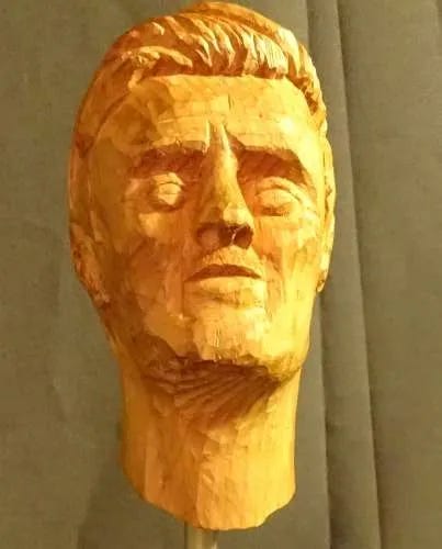 Two-meter Peter is immortalized forever with this beautiful wood carving, unless someone sets it on fire.