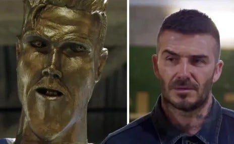 David Beckham was pranked by James Corden with this hideous bust in LA.