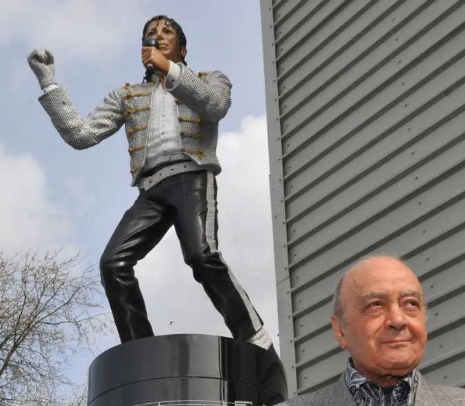 A 2.5-meter plaster and resin sculpture of Michael Jackson was erected outside Fulham Football Club in 2011. Commissioned by the club's chairman Mohamed Al-Fayed, who was a massive fan and friend of Michael. The Fulham fans were not so enamoured saying, “We're a laughing stock. It has nothing to do with football. It makes the club look silly. Best of all, “He looks a bit constipated.” Sadly, Michael only survived 2 years.