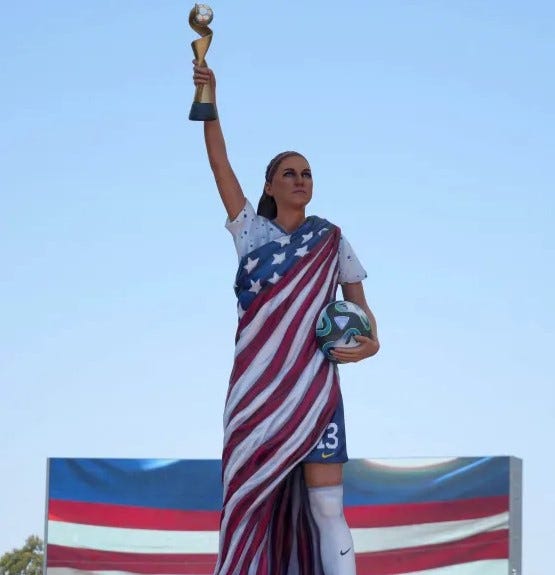 Fox sports unveiled a statue of Megans team mate Alex Morgan before the 2023 Women’s World Cup. An obviously embarrassed Alex said, “You guys, she is big.”