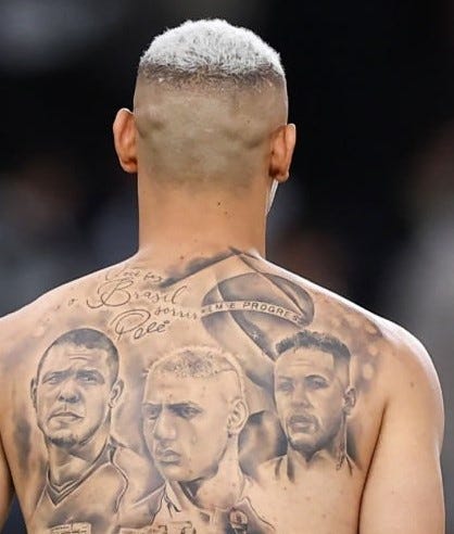 There are no statues of Tottenham’s Richarlison and hopefully there never will be. Charli deserves a mention though for this fantastic tattoo. That’s him in the middle flanked by Brazilian greats Neymar and Ronaldo. Apparently, Neymar offered Charli a huge sum of money to have his face removed.